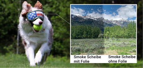 Solange wie Dein Hund nicht in den Brillenrahmen beißt oder Ihr ihn nicht ins Feuer werft, hält er ein Hundeleben lang. Das Material des Rahmens ist flexibel und leicht, trotzdem aber widerstandsfähig und bruchfest. Der große Abstand zwischen Augen und Scheibe verhindert, dass Fell bzw. Augenwimpern die Scheibe berühren. Die große ca 2.5 cm breite Belüftungsöffnung sorgt für gute Luftzirkulation, so dass keine Stauhitze entsteht.