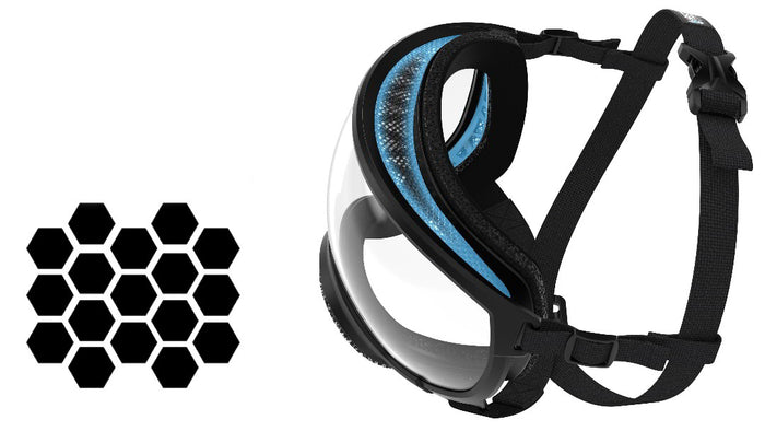 Das 7 mm dicke und umlaufende Polster besteht aus einem Schaumstoff, auf dem ein weicher Fließstoff aufgebracht ist und sorgt somit für einen sehr guten Tragekomfort. Dein Hund kann die Brille viele Stunden am Stück benutzen/tragen.