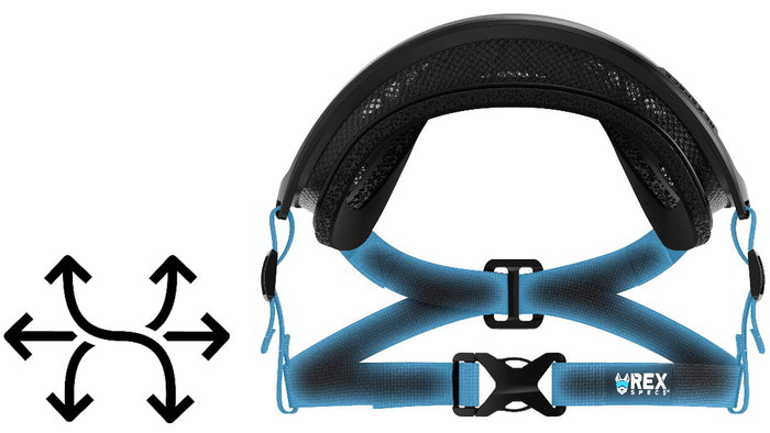 Warme Luft, die sich hinter der Scheibe bildet, kann nach oben entweichen. Das Meshgewebe verhindert zugleich, dass Fremdkörper in das Innere der Brille gelangen. Staub, Sand oder sogar Insekten bleiben draußen.
