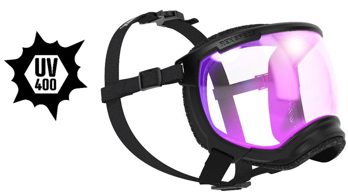 Alle Scheiben, auch die klaren, haben den UV400 Standard (99,9% UV-A und UV-B Schutz). Nicht nur für kranke Hundeaugen ist der UV-Schutz wichtig. In den Bergen auch ohne Schnee ab einer Höhe von ca. 1000 m und an Gewässern ist die Belastung am höchsten.