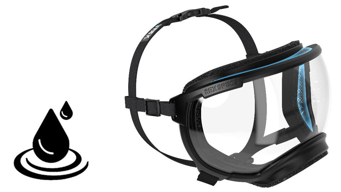 Im Sommer wollen die meisten Hunde sich im Wasser abkühlen und lieben es zu Schwimmen. Mit der Rex Specs ist das kein Problem, der sichere Halt garantiert, dass die Brille nicht im Wasser verloren geht. Eindringendes Wasser fließt sofort ab und garantiert freie Sicht.