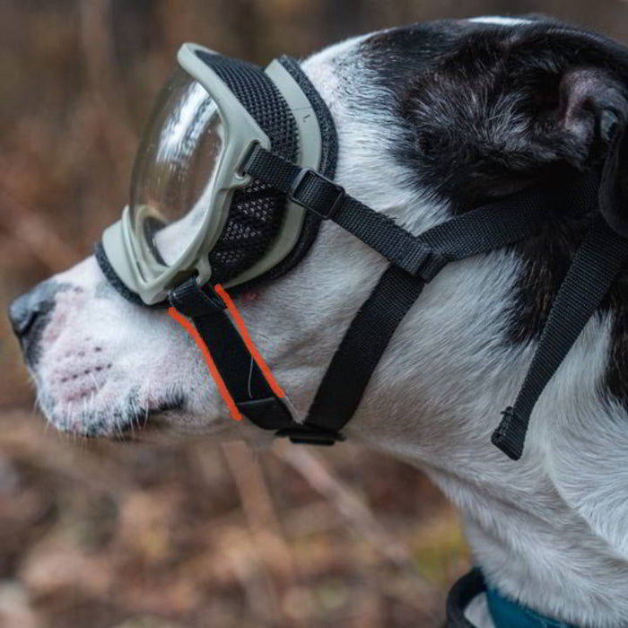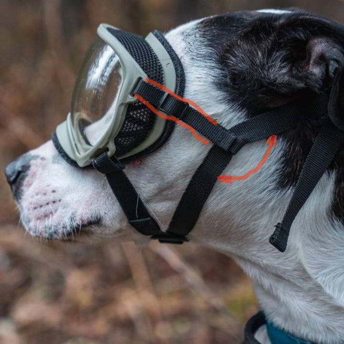 Das Anpassen der Gurte an Deinen Hund ist ABSOLUT NOTWENDIG! Der richtige Sitz und die richtige Einstellung sorgen dafür, dass die Brille an Ort und Stelle bleibt und für Deinen Hund möglichst bequem ist. Es ist unwahrscheinlich, dass Du die Gurte beim ersten Mal PERFEKT einstellen kannst - es wird eventuell einige Versuche brauchen, bis alles so eingestellt ist, dass die Brille sicher, bequem und funktionell sitzt. Falls Du Fragen hast melde Dich bitte bei uns.